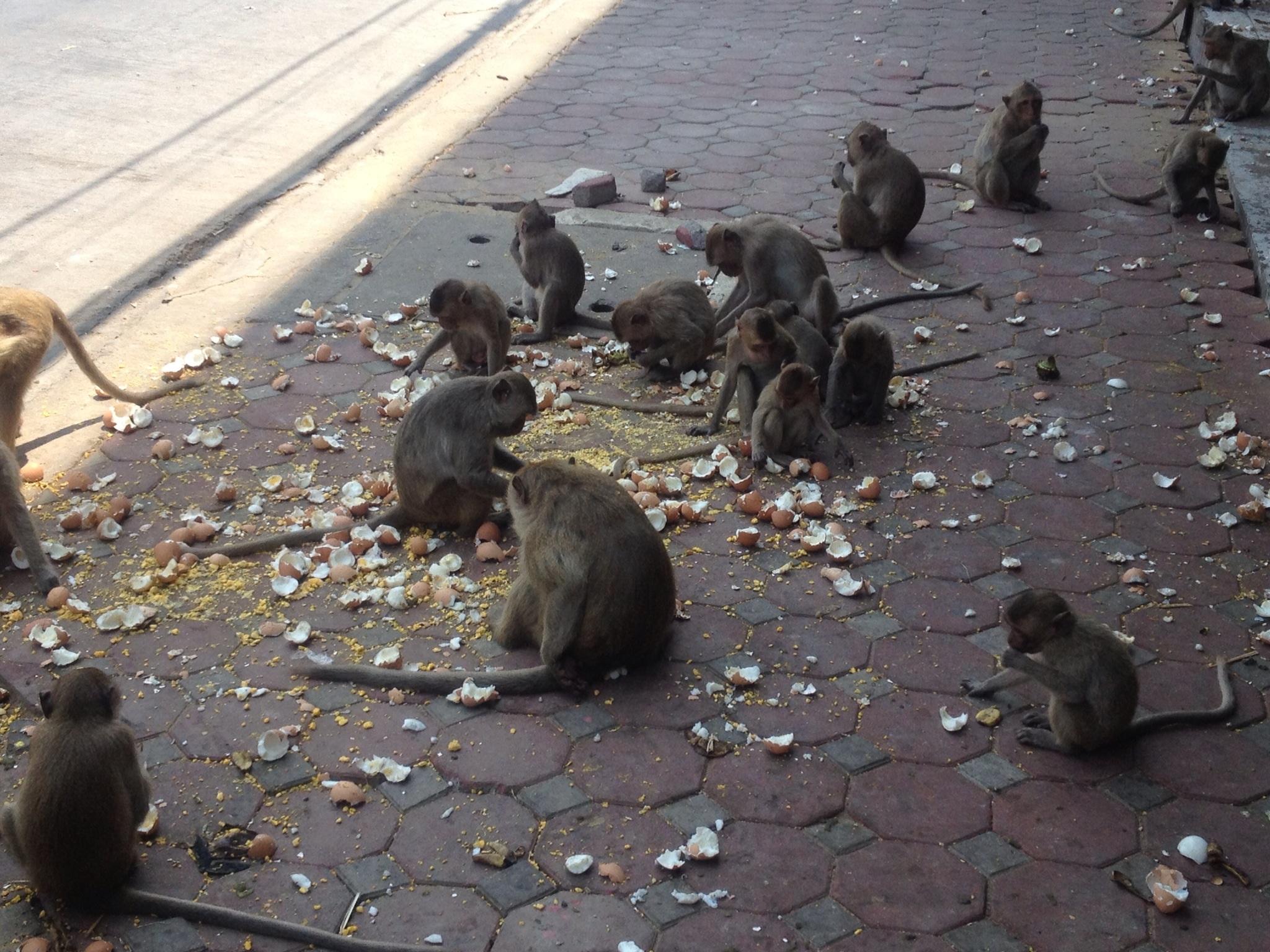 Eating Published April 7, 2013 at 2048 × 1536 in Monkey Business Monkeys eating their feast off the pavement.