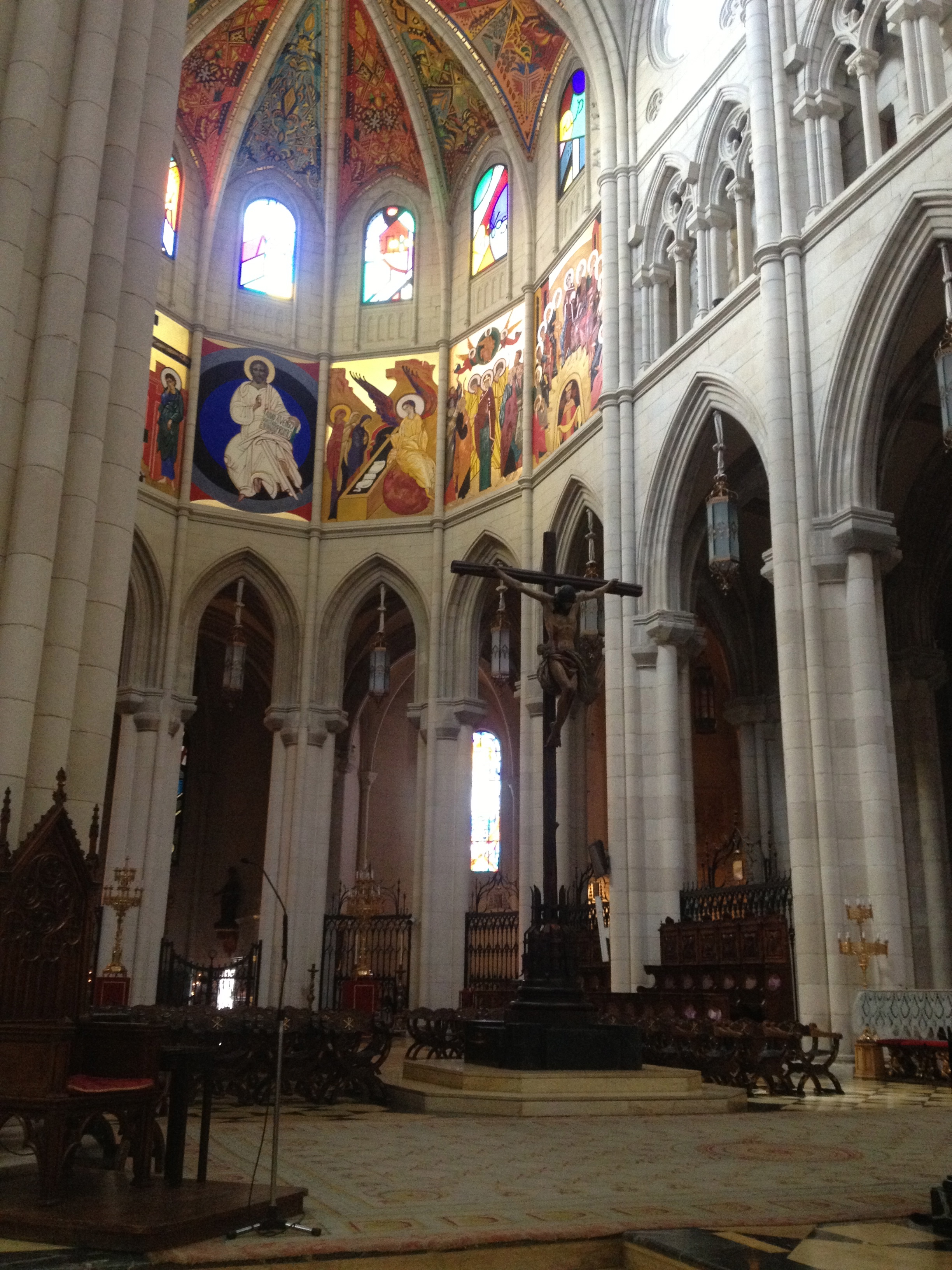 The main alter in the church, featuring the Apse Cathedra (the chair of St Peter) and the Apse Gloria (the stained glass window).