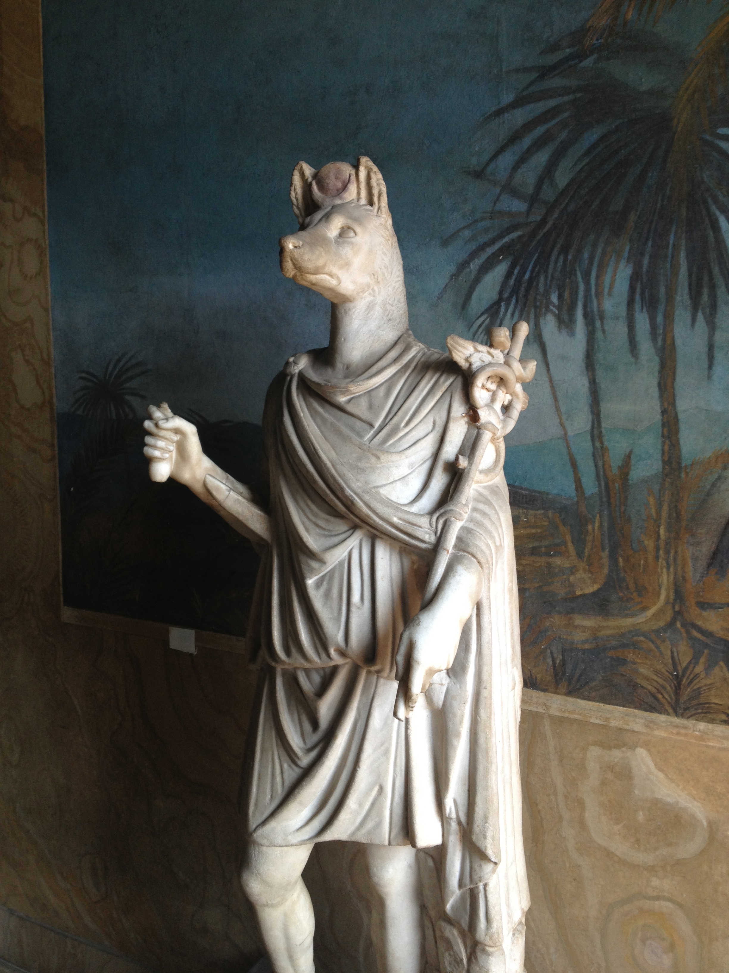 The statue of Hermanubis, a god who was a combination of Hermes in Greek mythology and Anubis in Egyptian mythology.