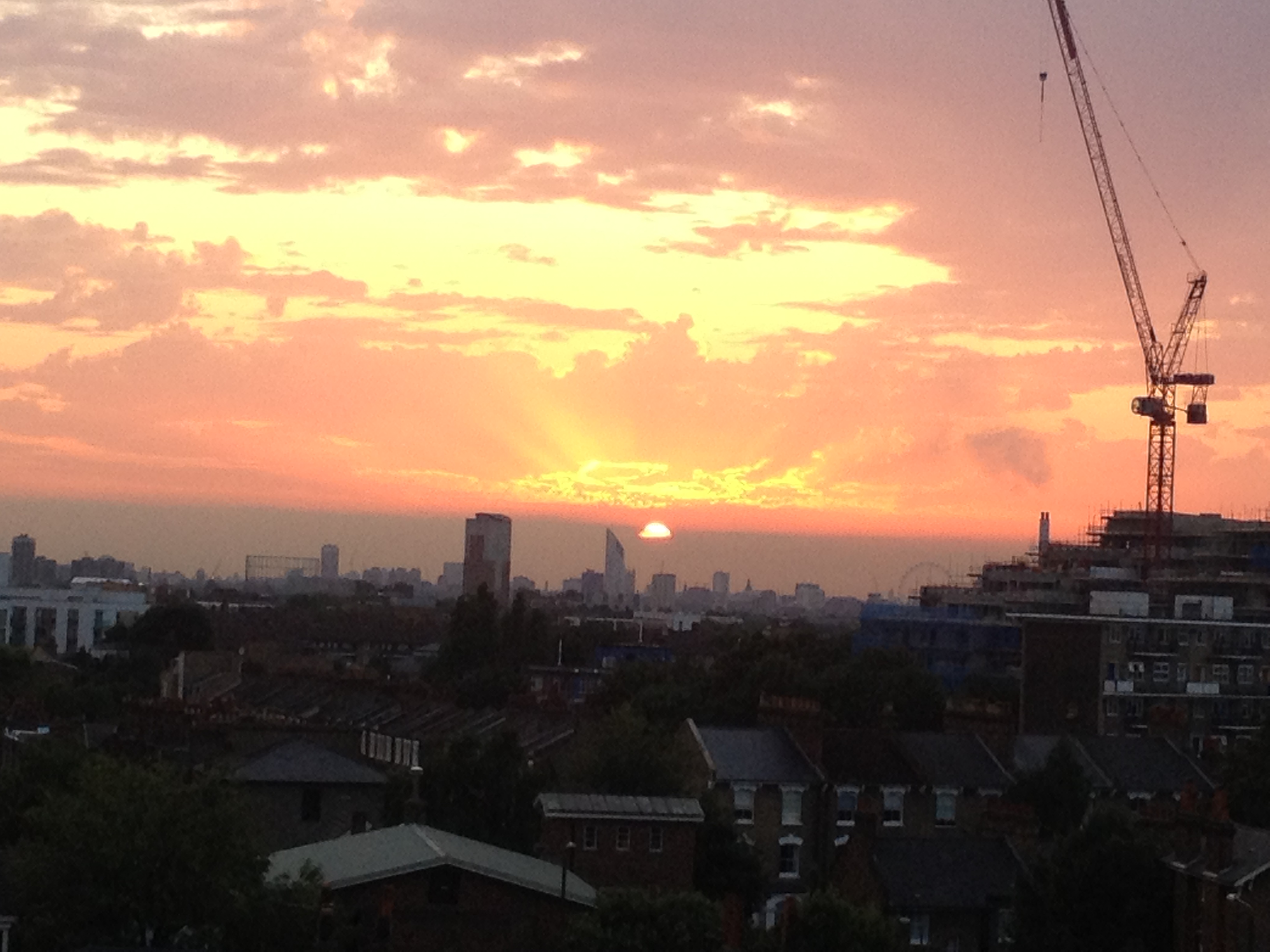 “It’s one of the best views in London, of London, people say,” Tim told me as we marched up the gentle slope. All around us, couples and groups were lying about and soaking up the last of the afternoon sun, dogs running around between them and children frolicking about playing games. It was such a pleasant scene, and Tim and I took a seat for a little while and chatted as we watched the afternoon fade into evening. Tim had plans to see the One Direction film that evening, so we said goodbye at the Camden tube station, where he was heading off to Soho, and I hired a bike from one of the numerous bike rental stations and followed it back along the canal again until I finally reached Hackney.