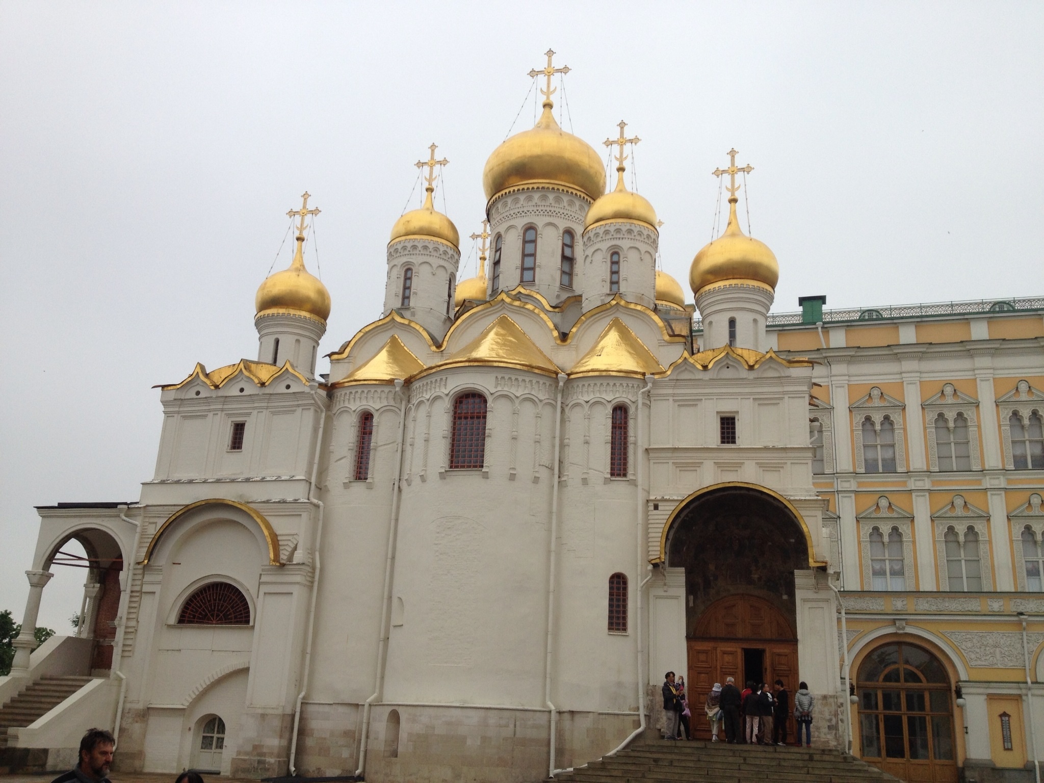 The Kremlin is essentially a huge palace complex that has been the hub of political power in Russia since forever, pretty much, and is surrounded by high walls made of blood red brick. It was once the centre of the Russian Orthodox Church, but also the central office for the royalty and tsars as well as communist leaders and democratic presidents alike. The red bricks surprisingly have nothing to do with the name of Red Square, and are no suggestion to communism either. Later, Maria would inform me that in Russian, the word for red has dual meanings, and that it had actually been the word for beautiful long before it was ever affiliated with the colour. The more you know. The main features of the Kremlin, though, are the churches inside, some of which have been transformed into museums and exhibitions. Most are still very well maintained in their original condition, designs that appeared to be far more modern than the palaces I observed throughout Asia, though can easily be admired as whole pieces of art in their architecture and decoration. They all follow similar Russian Orthodox designs on the outside, but the insides are far more intricate. Most places required the purchase of a permit to take pictures, but I don’t think any photos can really do justice to these places – especially not the camera on my iPhone.