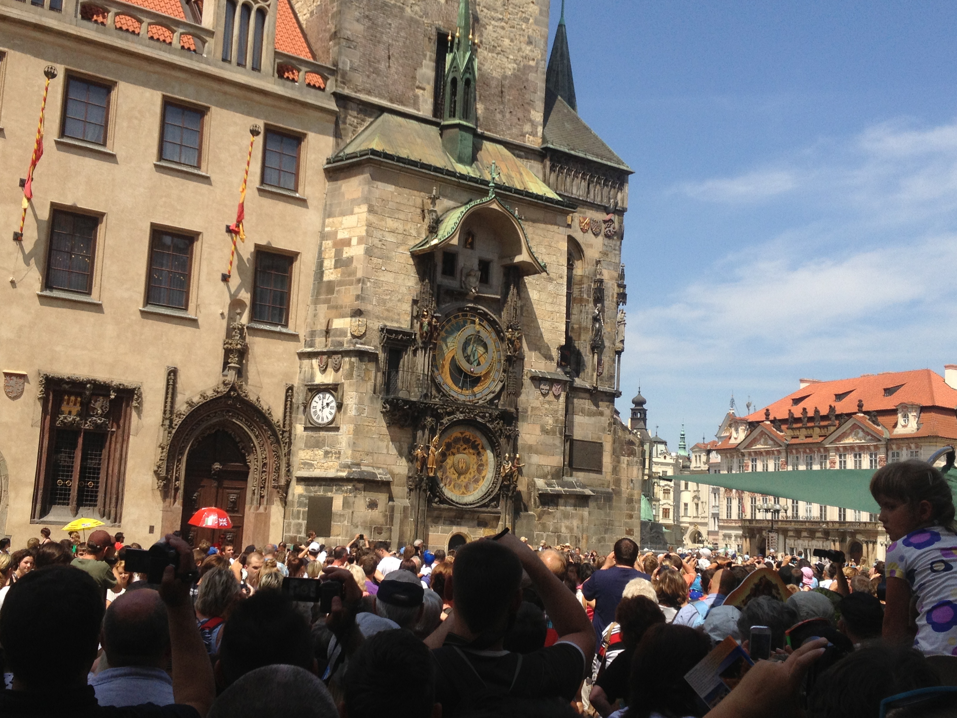 The bell tower performance isn’t technically a tourist trap in that it doesn’t really cost any money. Yet still, I couldn’t help but feel a little ripped off after watching it. It’s an extremely famous and popular sight to witness, and the flocks of people surrounding the bell tower had definitely peaked my curiosity. Matej and Tomas must have been rolling their eyes as I stood on my tip-toes to peer over the crowd, but they knew it was something I would have to witness and judge for myself. When the hour rolled around, the chimes began to echo through the square, and little wooden doors opened up from the clock, and out came a small procession of figurines, which Tomas would later inform me were supposed to be a parade of the apostles. Above them, a skeleton emerged to ring a small bell, which clanged out over the crowd. Flashed from hundreds of cameras went off, and I waited eagerly to see what else would happen… The apostles did their loop and went back inside, and the skeleton eventually finished ringing his bell and retired back into the clock. There was a small cheer from the crowd in front of me.